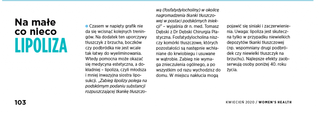 • Na małe co nieco…LIPOLIZA. Dr Dębski dla Women’s Health
