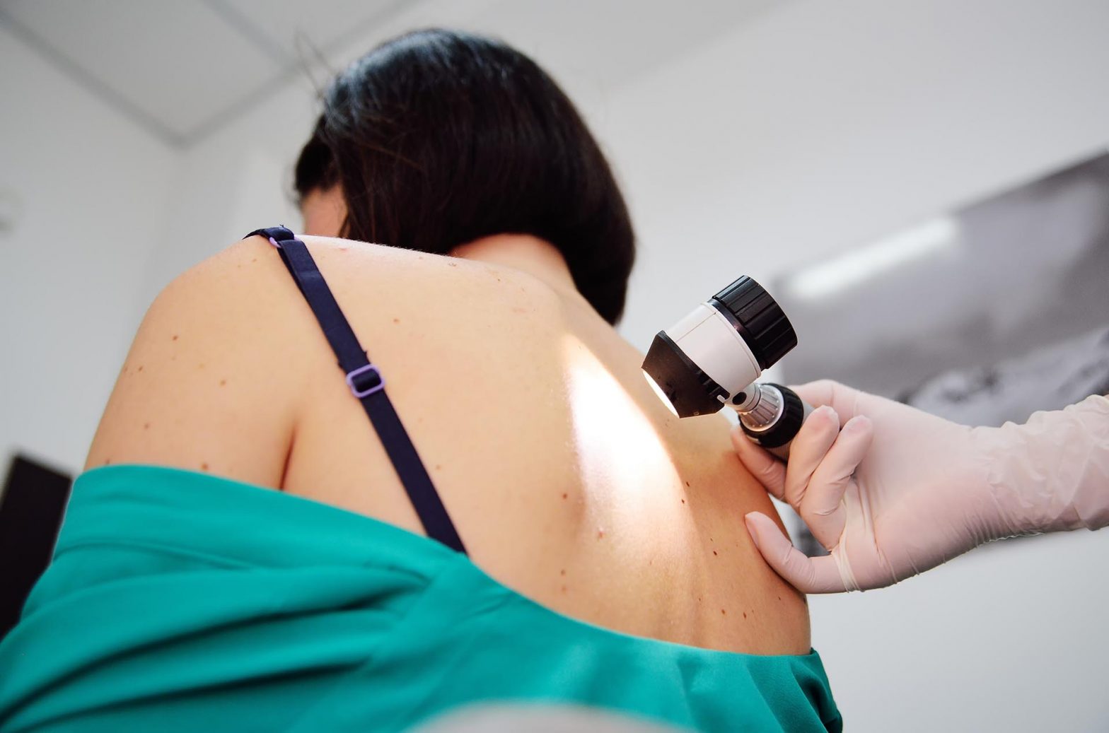 W Klinice Dr Dębski badanie przeprowadzają doświadczeni lekarze dermatolodzy, którzy pod dermatoskopem dokładnie sprawdzają znamiona i określają czy są to tzw. pieprzyki czy inne niepokojące zmiany skórne – to nic nie boli!